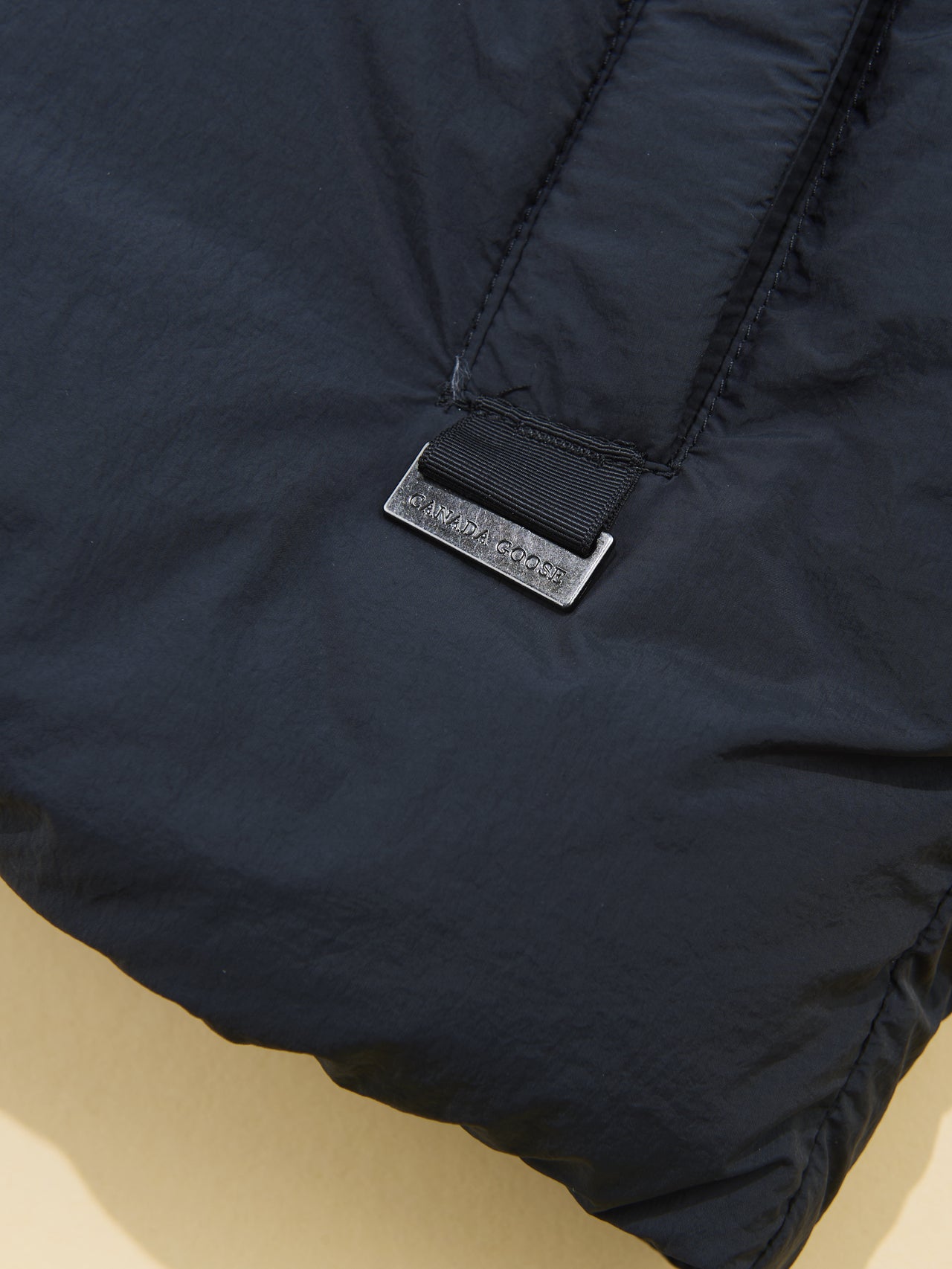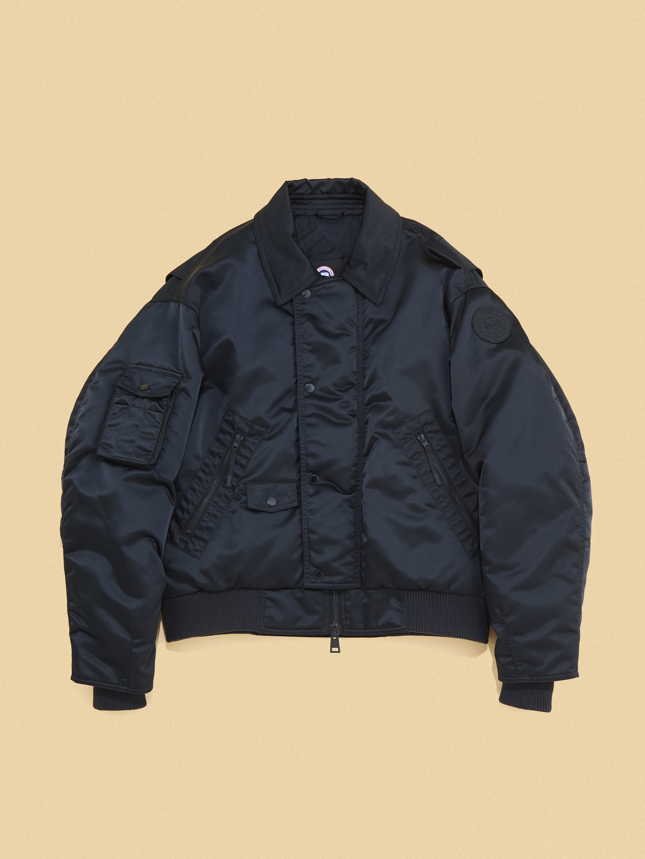 モダンな機能性とカナダグースのタクティカルDNAを融合させた、滑らかで光沢のある仕上げのクラシックな「セガン アビエーター ボンバー」。実は25年以上前にデザインされたアーカイブスタイルをベースにしている。ダブルプラケットやペンポケット、リブ仕様のウエストなどクラシックなボンバーディテールを継承しつつ、滑らかで光沢のあるサテン素材、ナイロンギャバジンを使用し現代的かつ上品なアイテムに。