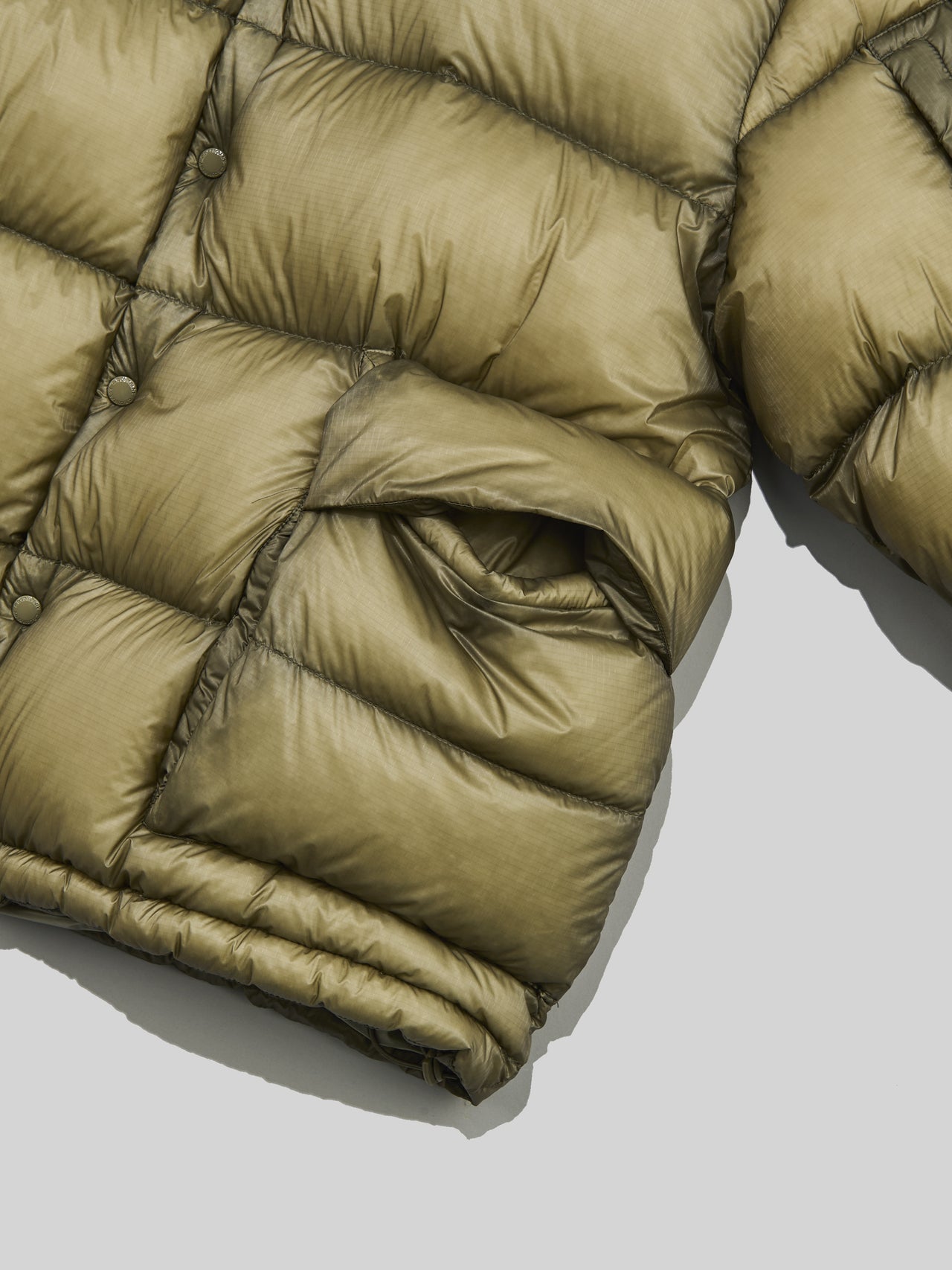 ダウンの持ち味であるボリューム感を活かしながら、Re-Nylonの生地で都会的なルックスに仕上げたダウンジャケット。ダウンボールが大きく、高品質なグースダウンが封入してあり、暖かさは折り紙付き。首元をすっきりと見せるスタンドカラーとクロップド丈のコンビネーションがモダンな冬スタイルを叶えてくれる。