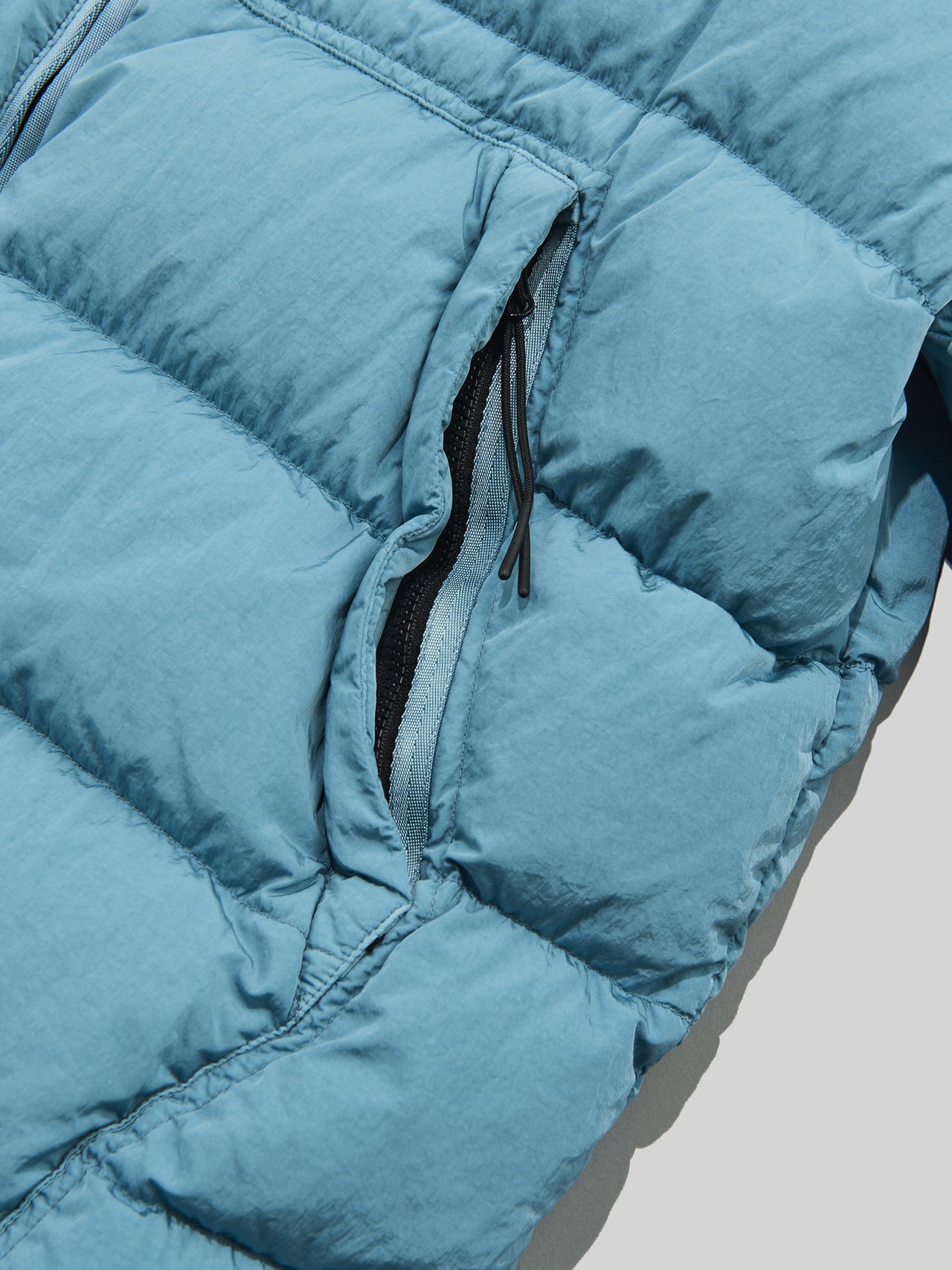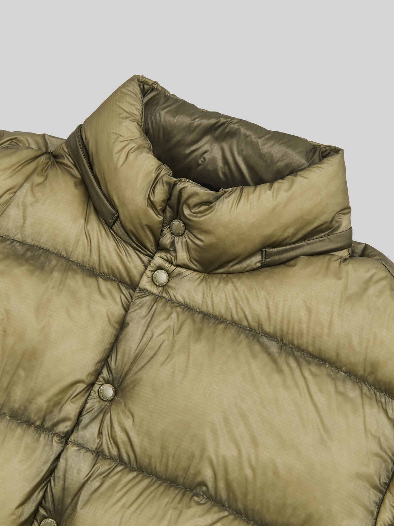 服好きの間で圧倒的な人気を誇るイタリア発のブランド「C.P.COMPANY(シーピー・カンパニー)」とのコラボダウンが登場。コーチジャケットのようなルックスに、微光沢のある上質なナイロンで品の良さをプラスし、ほどよいストリートムードに仕上げた逸品だ。チンストラップや腰元のコードなど、クラシカルなデザインにも注目したい。
