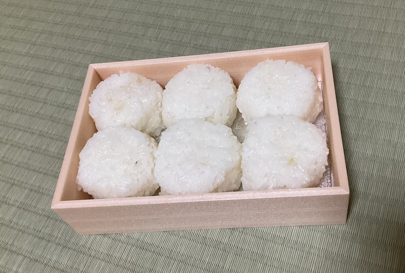 余ったご飯は塩にぎりにして持たせていただけます。塩強めのおいしいおにぎりでした。