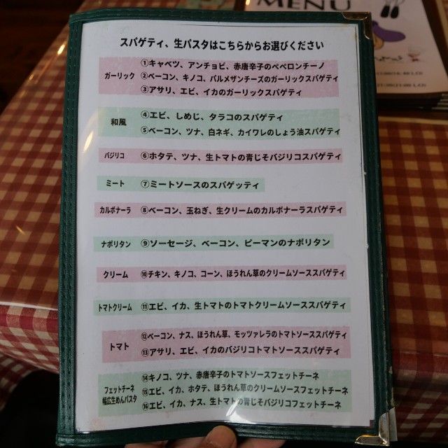 メニュー表が31ページもあるのが特徴的で、パスタだけで全45種類もあるので悩むのは避けられない