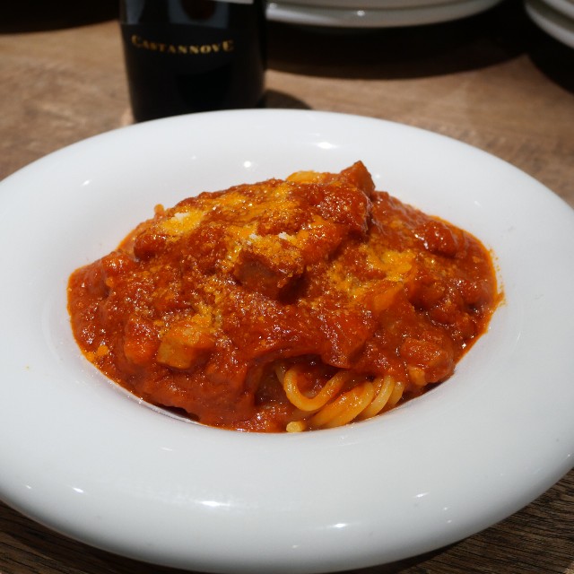 お肉の旨みが分かりやすいパスタで、単調じゃないので食べ飽きないですね。ソースとパスタが違和感なくマッチしていて、野菜が見事なバランスでクッション役として働いています