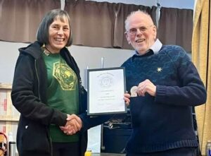 Pauline Woods-Wilson presenting Mike Heaney with his Honorarly Life Membership to The Morris Federation. Photo by Deedee Bailey. At our AGM in Sheffield on Saturday 27th September 2025, we were
