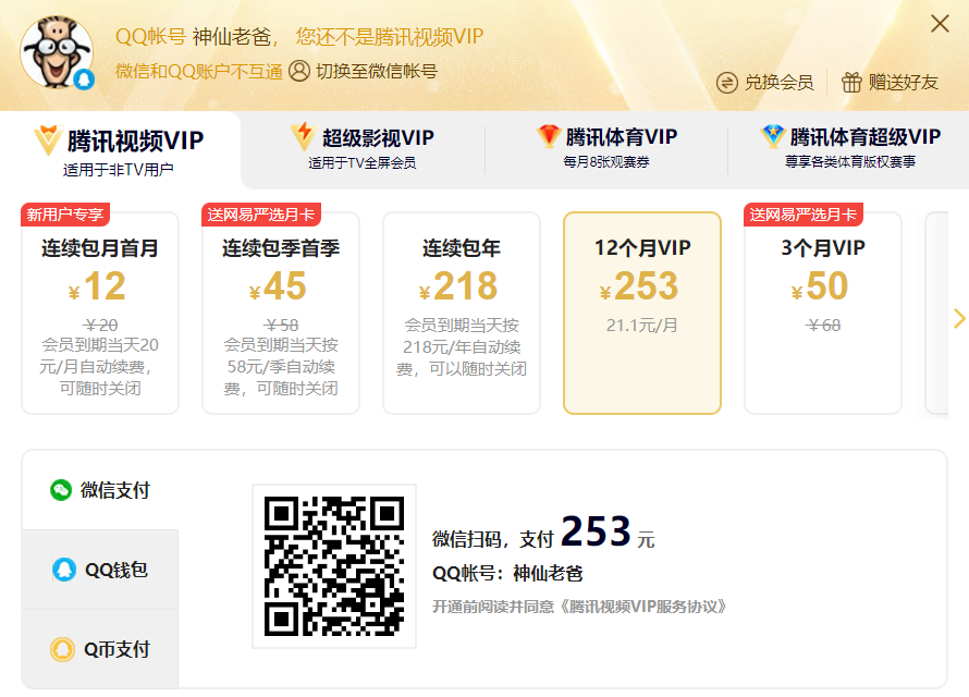 1、腾讯视频 VIP