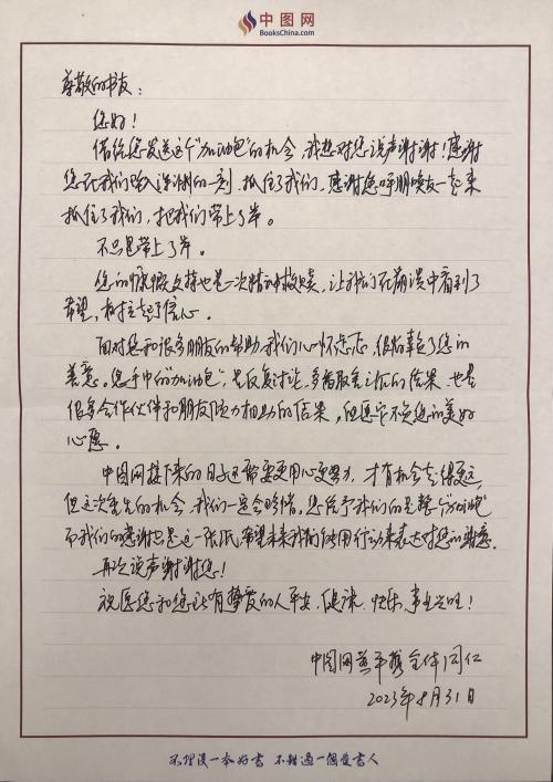 当然,最让人感到欣慰的,是随书附上的一封手书版的感谢信:“借给您发送这个‘加油包’的机会,我想对您说声谢谢!感谢您在我们坠入深渊的一刻,抓住了我们。感谢您呼朋唤友一起来抓住了我们,把我们带上了岸。”