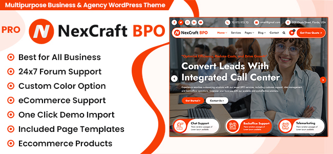 NexCraft BPO is a premium WordPress theme designed to cater to businesses of all kinds, offering a powerful and versatile platform for creating professional websites. Whether you’re a business consultant, financial advisor, insurance agency, investment firm, accountant, entrepreneur, freelancer, or agency, Nexcraft is crafted to help you showcase your expertise, build trust, and attract clients effortlessly.