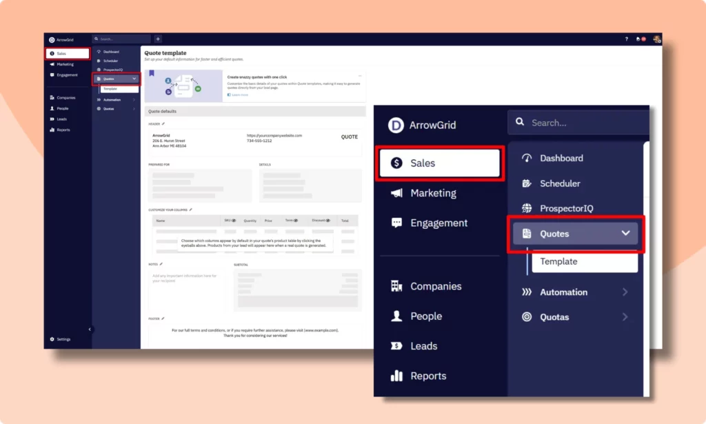 No more copying data into separate quoting software or spreadsheets—Everything stays in one centralized hub, tied to your leads and contacts. That means your reps can spend less time on ‘paperwork’ or duplicate tasks, and spend more time closing deals while managers get complete visibility into every quote’s status.