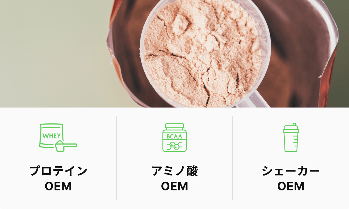 プロテインOEMとは? プロテインOEMとは、自社でプロテインの製造設備を持たずに、専門の製造業者に製造を委託し、自社ブランドのプロテインを販売することです。OEMは「Original Equipment Manufacturing」の略で、日本語では「相手先ブランドによる製造」を意味します。 小ロットプロテインOEMのメリット・デメリット 小ロットでのプロテインOEMは、少ない資金でオリジナルブランドのプロテインを販売できる魅力的な選択肢ですが、メリットだけでなく、デメリットも理解しておく必要があります。 メリット 小ロットOEMでは、大量生産と比べて初期費用を抑えられます。そのため、資金調達が難しいスタートアップ企業や個人事業主でも、比較的容易にプロテインビジネスを始められます。 小ロットから販売を開始し、市場の反応をいち早く把握し、販売戦略を柔軟に修正できます。売れ筋のフレーバーやパッケージデザインを検証し、より最適な商品開発につなげることが可能です。 大規模な投資をせずに、まずは小ロットで試すことで、市場への参入リスクを最小限に抑えられます。もし、思ったように売れなくても、損失を最小限に抑えることができます。 デメリット 小ロットの場合、製造コストが割高になるため、製品の単価が高くなる傾向があります。そのため、売値(上代)にその分を転嫁できない場合には、利益率が低くなることを考慮する必要があります。 また、小ロットといえど、最低ロット数が設定されている場合があり、少なすぎると受注可能なOEM業者が見つからない可能性があります。 小ロットプロテインOEMを選ぶ際の注意点 小ロットでのプロテインOEMは、メリットもデメリットも理解した上で、慎重に検討する必要があります。以下に、注意すべきポイントをまとめます。 最低ロット数 小ロットといえども、最低ロット数は各業者によって異なります。一般的には、100~500kg程度が目安となります。業者によっては、数十kg単位からでも可能な場合もありますが、その分単価が高くなってしまうことが大半です。 単価 小ロットの場合、単価は高くなる傾向があります。プロテインOEMにおいては、ロットを大きくするほど単価が低減し、逆に小さくするほど単価は高くなります。自社の想定販売価格から逆算して、どの程度の単価を原価とするか考えながら相見積もりをとって検討しましょう。 追加費用 製造費用以外にも、パッケージデザイン費用、ラベル印刷費用、送料など、追加費用が発生する場合があります。見積もり時に、これらの費用も確認しておきましょう。 製造期間 小ロットの場合、製造期間が長くなる可能性があります。少量なので、すぐ終了すると思われがちですが、生産の優先度などが低くなることによって納期が遅い場合もあります。納期を確認し、販売計画に余裕を持たせておきましょう。 プロテインOEMで重要なポイント6つ 小ロットプロテインOEMで成功するためには、以下の6つのポイントを意識することが重要です。 ターゲット顧客の明確化 誰にどんなプロテインを届けたいのか、ターゲット顧客を明確化しましょう。年齢、性別、ライフスタイル、運動レベルなど、具体的な顧客像を定義することで、商品開発やマーケティング戦略がより効果的になります。 差別化戦略 市場には多くのプロテインが存在するため、差別化戦略は非常に重要です。味、成分、パッケージデザイン、コンセプトなど、競合他社との違いを明確に打ち出し、顧客に選ばれる理由を作りましょう。 味 プロテインは継続して摂取することが重要なので、美味しくないと続けられません。ターゲット顧客の好みに合わせたフレーバーを選び、試飲を行いながら、納得のいく味に仕上げましょう。プロテインのOEMにおいてはサンプルを何回か試しながら味を決定していくことが一般的です。 成分 プロテインの種類、タンパク質含有量、その他成分など、ターゲット顧客のニーズを満たせる成分を配合しましょう。近年では、美容成分や健康成分を配合したプロテインも人気です。配合する成分や配合量によって、競合との差別化をはかったりマーケティングの際の訴求ポイント作りにもなるので、よく検討しましょう。また、配合する成分の相性や分量によっては味に影響が出るので、その点についても注意が必要です。 販売戦略・チャネル オンラインストア、実店舗、卸売など、どのようなチャネルで販売するのかを計画しましょう。販売するチャネルによって、競合も顧客層も大きく変わるので、どのチャネルで販売するのかを検討した上でプロテインを開発しましょう。 価格設定 コスト、市場価格、競合他社との価格帯などを考慮し、適切な価格設定を行いましょう。利益率を確保しながら、顧客が納得できる価格帯を設定することが重要です。 まとめ 小ロットプロテインOEMは、少ない資金でオリジナルブランドのプロテインを販売できる魅力的な選択肢ですが、単価が高くなる、ロット数が少なす