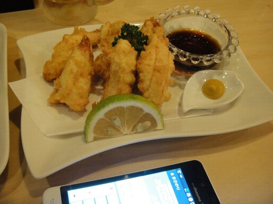 とりてんも揚げたてで、からしとポン酢で食べます。