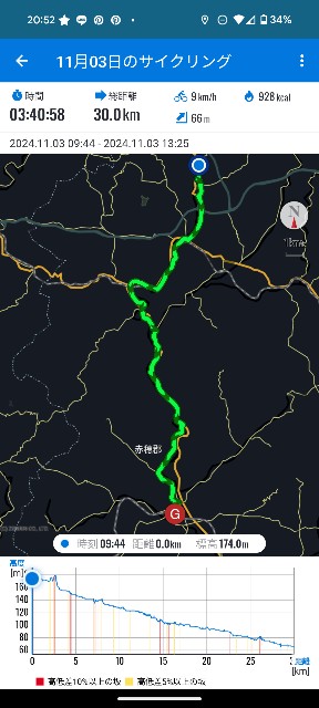 走行距離は30kmほど。ほぼ漕がずに目的地に着きました。