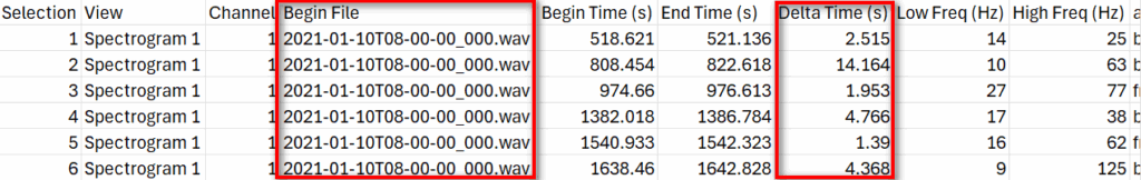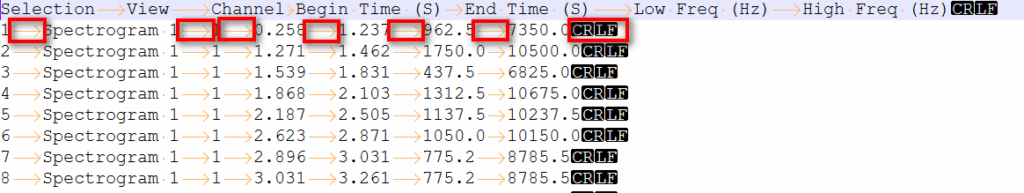 Tip: The minimum number of fields for a selection table built using third-party software is two, with “Begin Time (s)” and “End Time (s)”. Raven will add the “Selection”, View”, and “Channel” fields the first time you open the selection table in Raven.