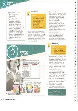 vocabulary, functions, and pronunciation). The book