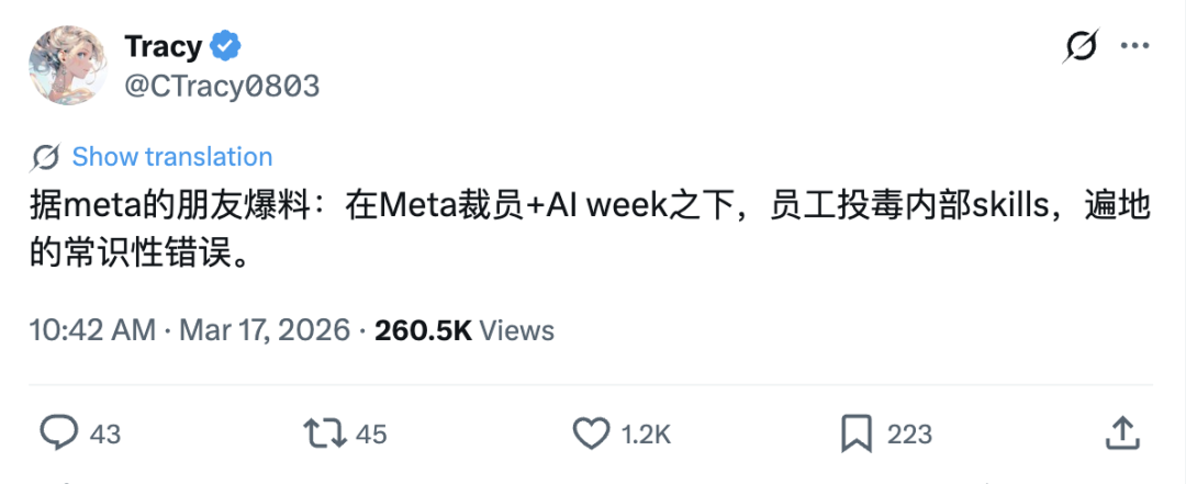 一名Meta软件工程师使用内部的agent(类似OpenClaw)分析了另一名员工在内部论坛上发布的技术问题。