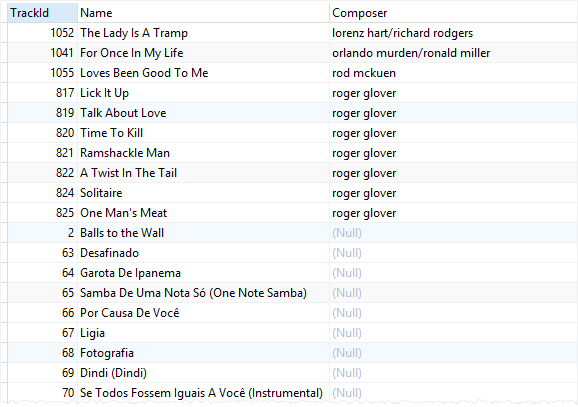 Composer;Code language: SQL (Structured Query Language) (sql)
