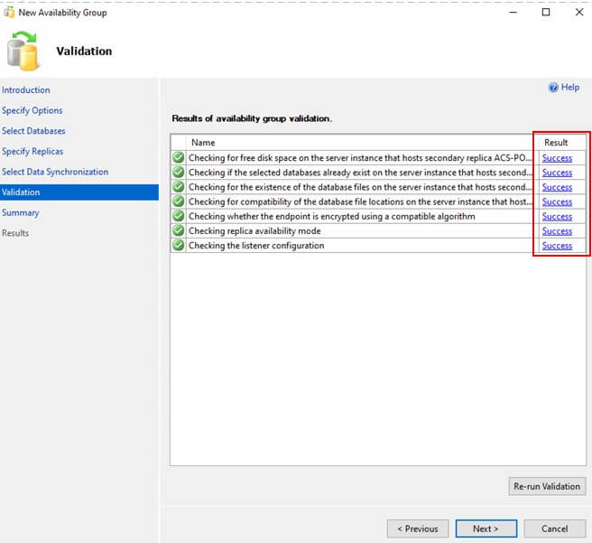Finally, perform a validation test, and if all the validations are passed, verify the configuration settings.