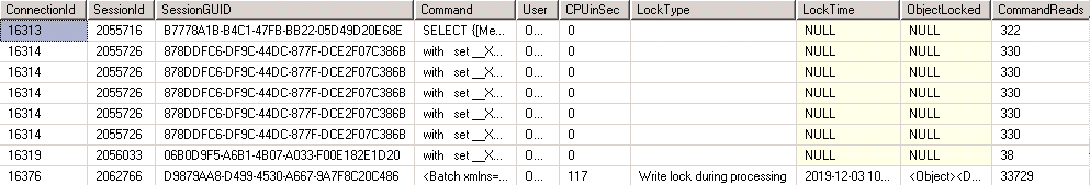 SELECT CAST([SESSION_SPID] AS INT) [SessionId], CAST([SESSION_ID] AS VARCHAR(MAX)) [SessionGUID], CAST([OBJECT_PARENT_PATH] AS VARCHAR(MAX))+'.'+CAST([OBJECT_ID] AS VARCHAR(128)) [Object], * INTO #CommandObjects