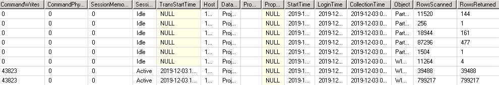 DROP TABLE #ObjectMemoryUsageThe variable @TZOffset allows you to adjust the time of the results with your local time. Otherwise you will see the activity as UTC and the collection time as your local time zone. The variable @IntervalMinutes allows you to exclude commands that were issued a long time ago, so if you run this script every 5 minutes, you can view only the commands executed in these last 5 minutes.