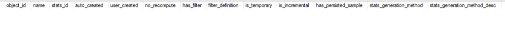 SELECT * FROM sys.stats WHERE object_id = OBJECT_ID('Test')
