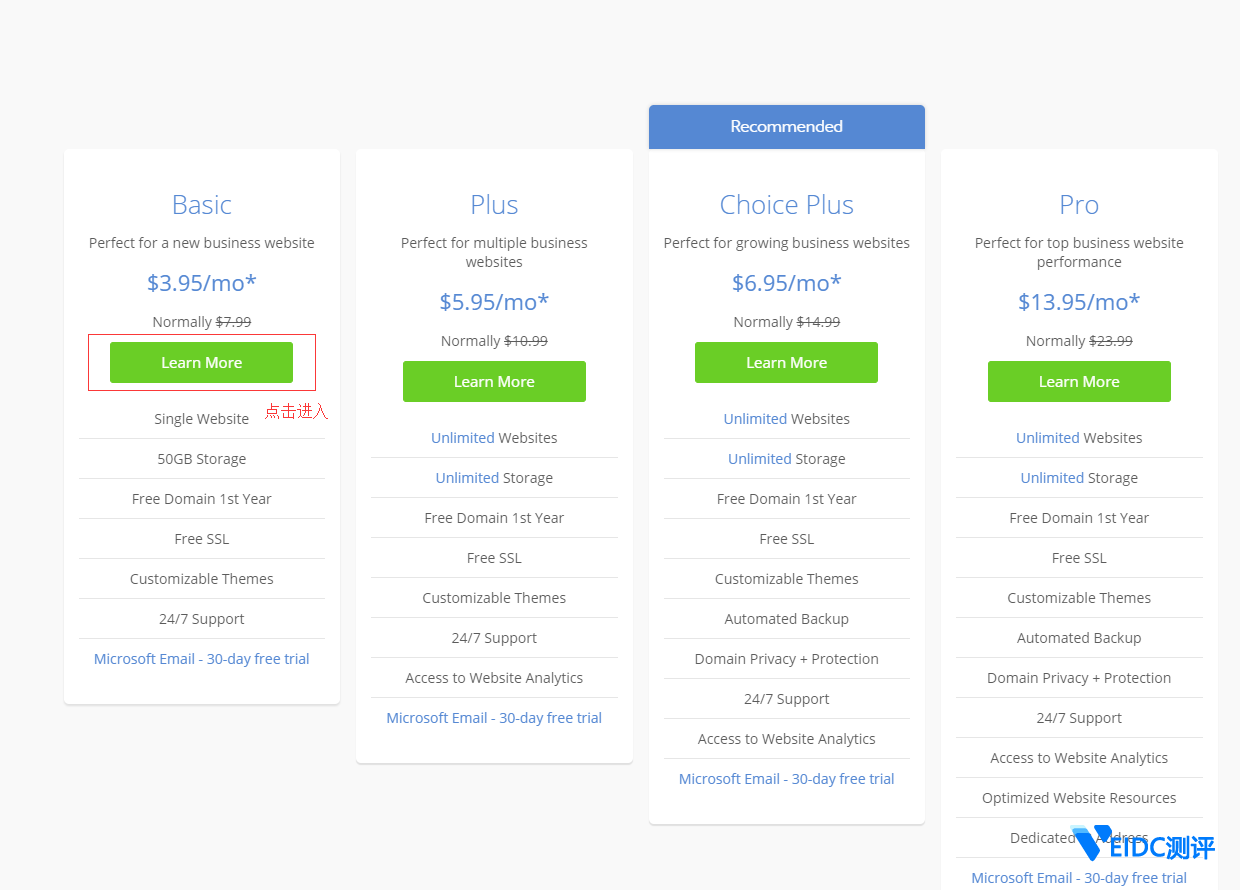 2.选择Basic方案套餐,点击“Learn More”。