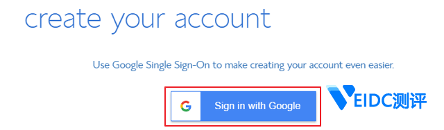 4.下一步是创建Bluehost虚拟主机账户。Bluehost为客户提供了非常便利的创建账户方,即利用Google Single Sign-On服务用客户的Google账户绑定快速创建。点击“Sign in with Google”;