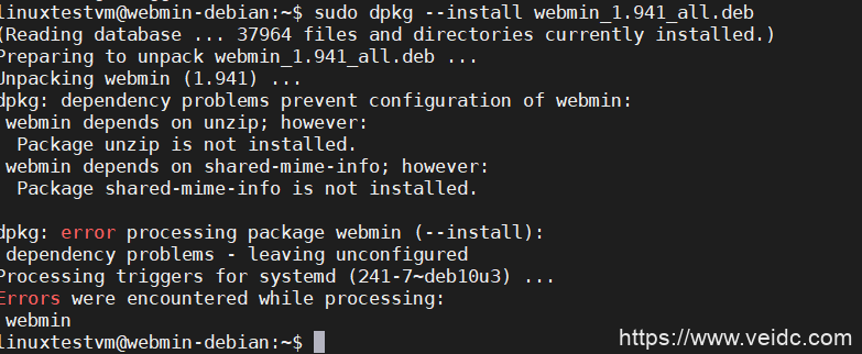 Setting up webmin (1.941) ... Webmin install complete. You can now login to https://webmin.example.com:10000/ as root with your root password, or as any user who can use sudo to run commands as root. Processing triggers for libc-bin (2.28-10) ... Processing triggers for systemd (241-7~deb10u4) ... Processing triggers for man-db (2.8.5-2) ... Processing triggers for mime-support (3.62) ...