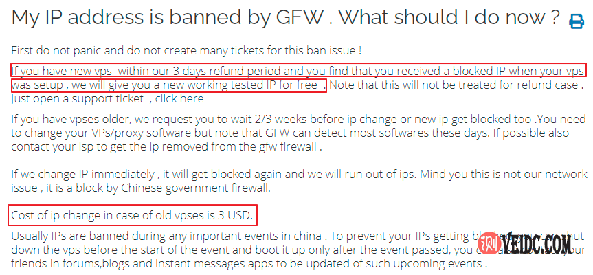 购买HostDare VPS不超过三天的话,如果发现IP被封或者访问速度慢,HostDare主机商会免费为你更换新的IP地址,新的IP地址都是经过测试,确保是可以正常使用的。
