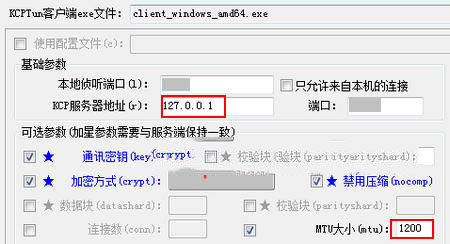 - KCP服务器地址:改为本地IP 127.0.0.1 ,连接到udp2raw客户端