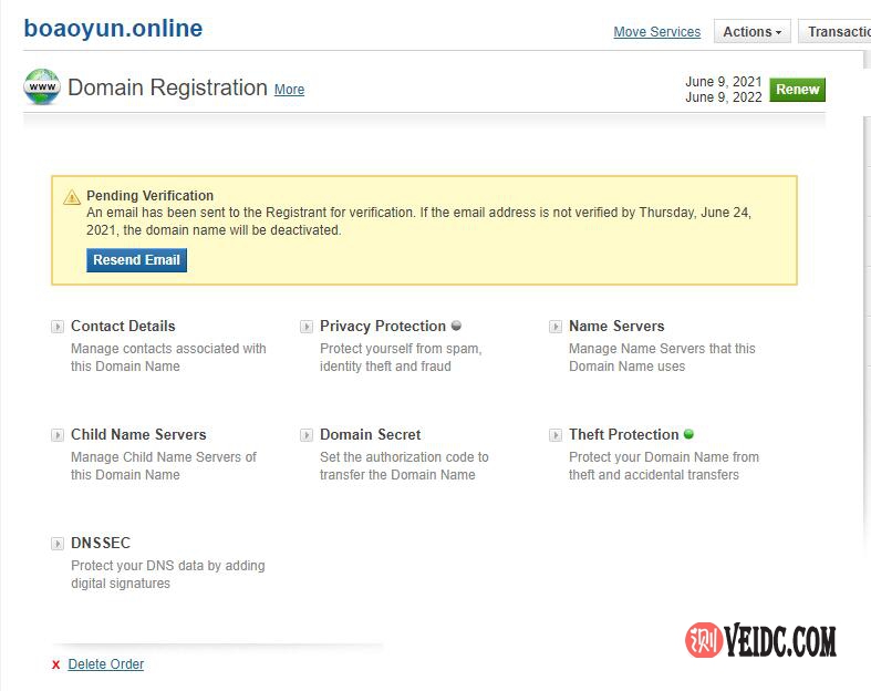 注意要验证邮箱,要不然会停止解析的,小编没事刚注册了2个,没事玩玩吧。如果到期想继续使用,看哪家转入续费便宜转过去就行了,毕竟是Directi集团旗下的,比所谓.TK域名还是更有保障。