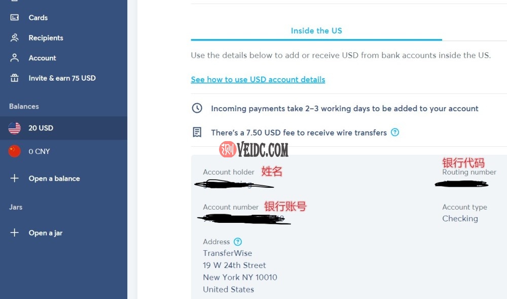 登录进入 https://wise.com/account/ ,点击左侧的 Open a balances,添加 USD。