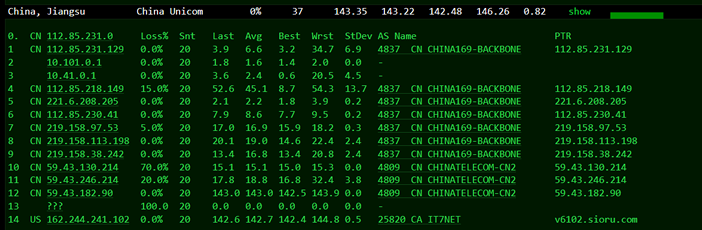 我们可以看到PING速度我们大陆节点也是在150ms左右的,速度可以说比较稳定。