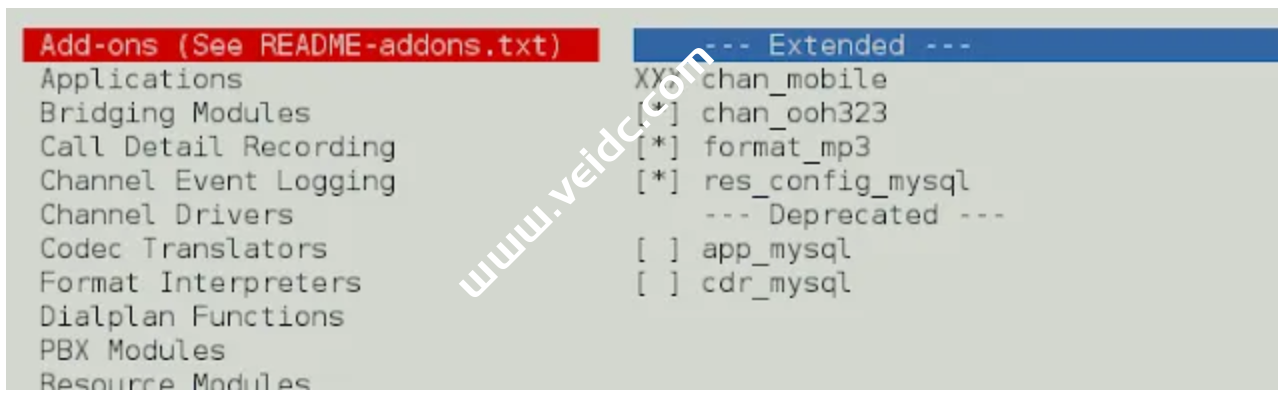 cd asterisk-* contrib/scripts/install_prereq install ./configure --libdir=/usr/lib64 --with-jansson-bundled contrib/scripts/get_mp3_source.sh make menuselect