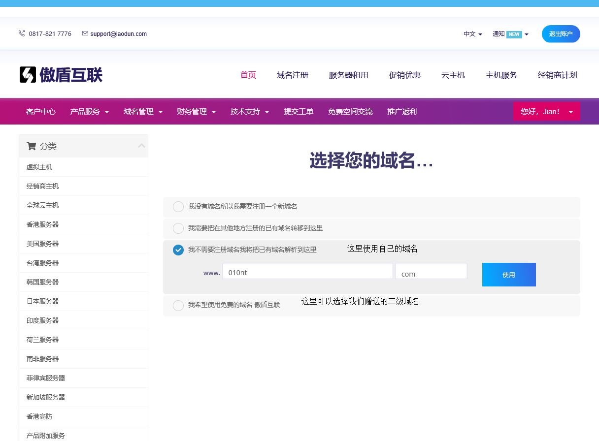 傲盾互联虚拟主机开通流程(含免费空间)