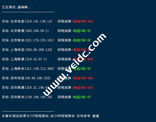 一键检测VPS回程国内三网路由