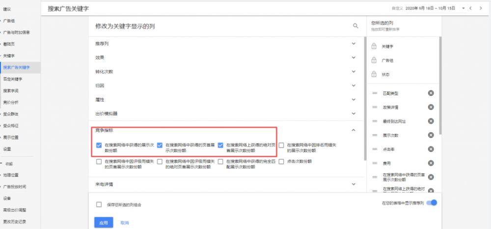 这个值取自对同一词设置的竞争对手的水平,高于平均值就是说,你现在的关键词效果要高于其他多数竞争对手。通过这个指标可以找出是哪里的问题,比如着陆页体验低于平均值,那就要对着陆页进行分析。