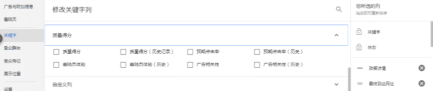我们在选择内容的时候会发现:侧边栏有些属性选择变成了灰色。这是因为一部分数据与我们现有的报告里的内容有所冲突或不相关,所以谷歌是默认关掉此类选择的。