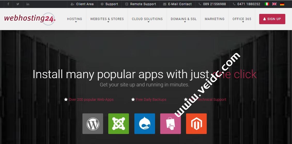 Webhosting24怎么样,Webhosting24是一家始于2001年的意大利商家,提供的产品包括虚拟主机、VPS、独立服务器等,可选数机房包括美国洛杉矶、迈阿密、纽约、德国慕尼黑、日本、新加坡、澳大利亚悉尼等。在此之前Webhosting24的日本和新加坡VPS的最低款大概是17美元一年,因为目前欧元和美元汇率相当,所以这款VPS稍微便宜了一点点,年付15美元,配置是1核@AMD Ryzen 3900/512MB内存/7G NVMe/1G带宽@250G流量,感兴趣的小伙伴可以关注一下。