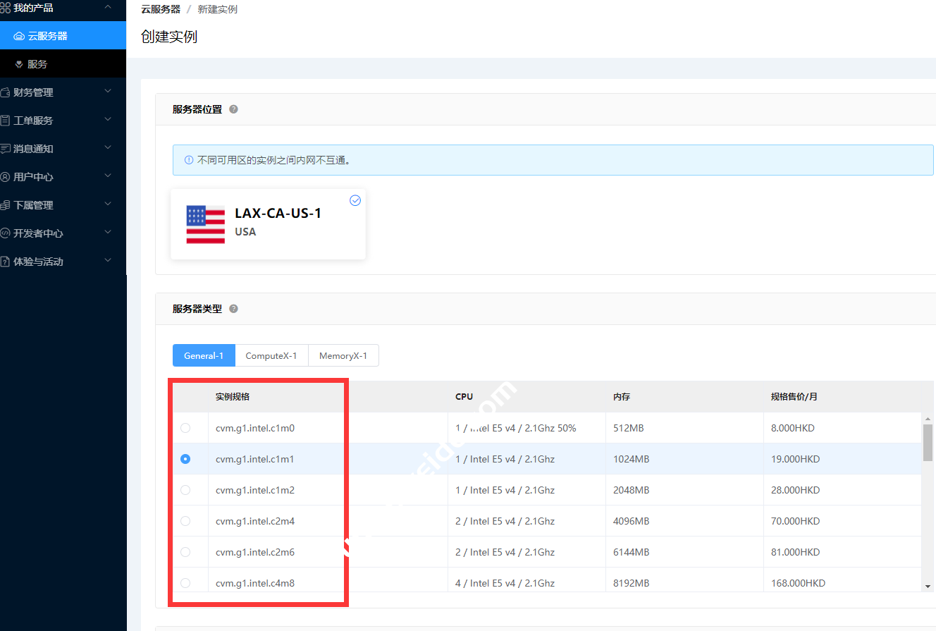 然后进入系统,我的产品,云服务器,点击新建,选择实例规格