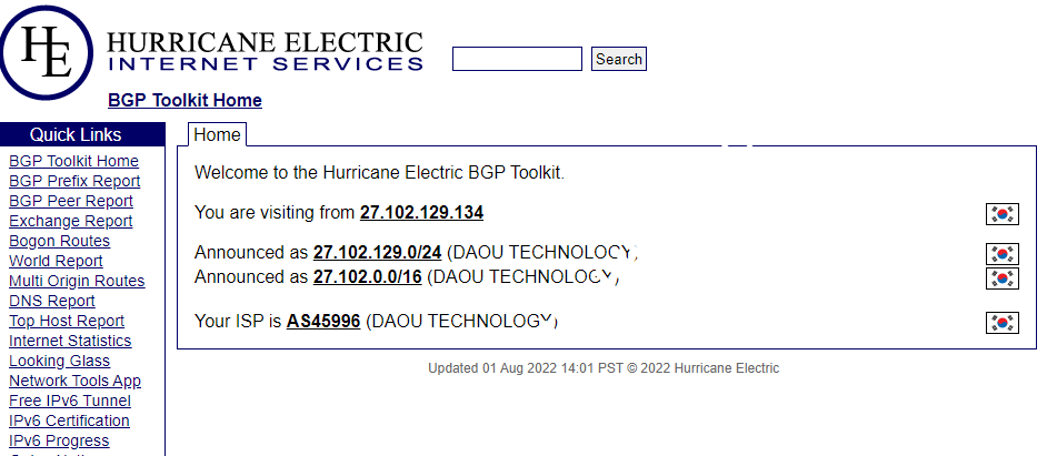 信息全部一至,所以判定这确实是韩国原生IP。下面是分享的几个工具网站,可以互相印证。