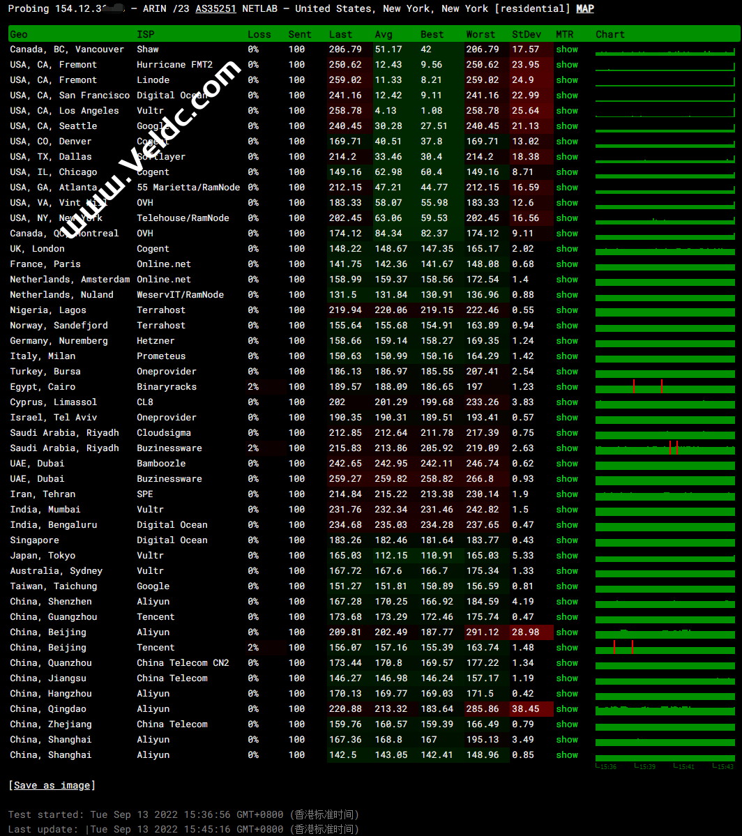ping.pe丢包率测试: