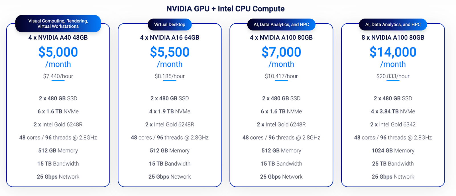 对于图形密集程度较低的应用程序——想想 Visual Studio 或 Android Studio 等开发人员 IDE,或 Microsoft PowerPoint、Excel 或 Word——由 NVIDIA A16 提供支持的云 GPU 具有足够的冲击力。对于上述一些图形密集型应用程序(和视频游戏),您也可以尝试使用 A16,如果您发现需要更多功能,则升级到 A40。