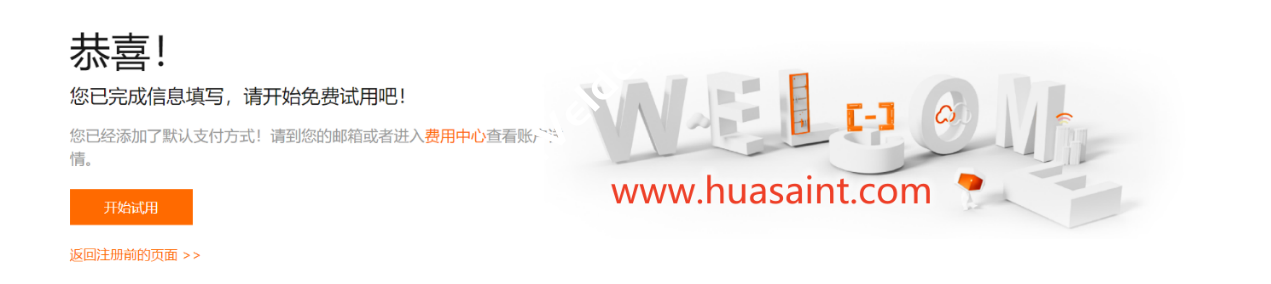通过邮箱验证,信息保存后进入如下提示,恭喜你,账号注册完成了!