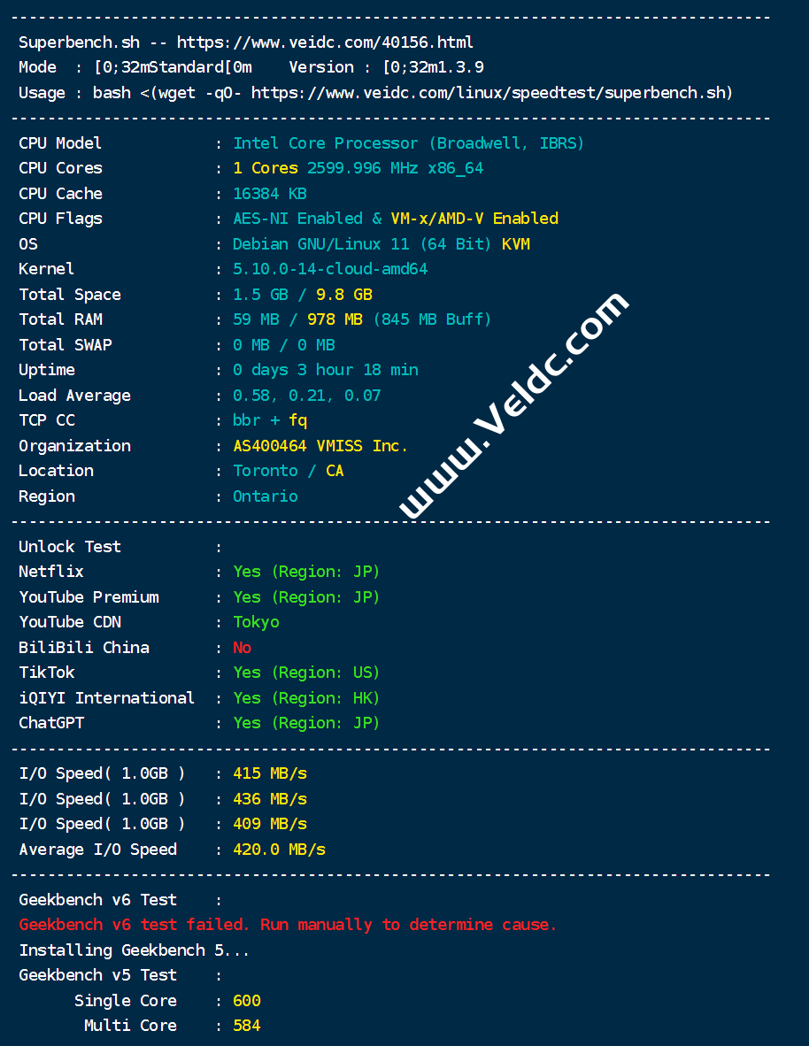 VMISS前几天新增了日本东京BGP和东京IIJ线路的VPS,线路方面日本东京BGP中国电信走IIJ,中国联通走软银,中国移动为CMI;日本东京IIJ线路中国电信和联通走IIJ,移动为CMI,所有套餐都包括3个IPv6,折后最低价格月付3.5加元(约18元人民币)一个月,性价比很高。本文我们实际开通了一台日本东京BGP线路VPS进行测评,针对机器性能、网络、流媒体解锁等方面进行测评数据分享。