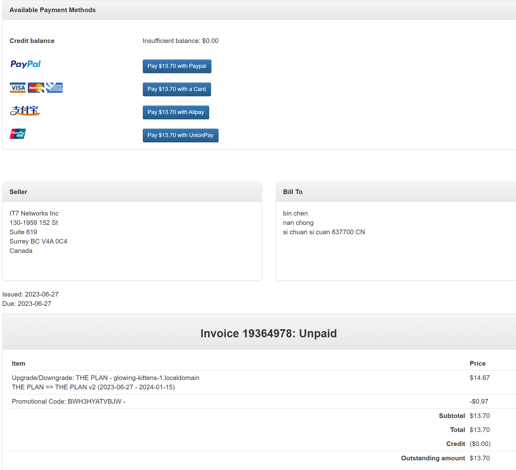 升级价格是根据当前计划的未使用部分的信用额度和同一期间(202 天)新计划的计费计算的,包括之前使用了优惠码,此外就不用重复使用,一并优惠。折后大约$13.70 USD