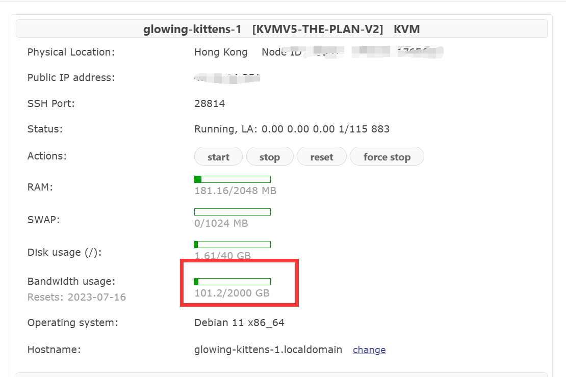 升级完成,进入查看流量已经是2000GB了,注意,升级过程机器会自动进行重启。