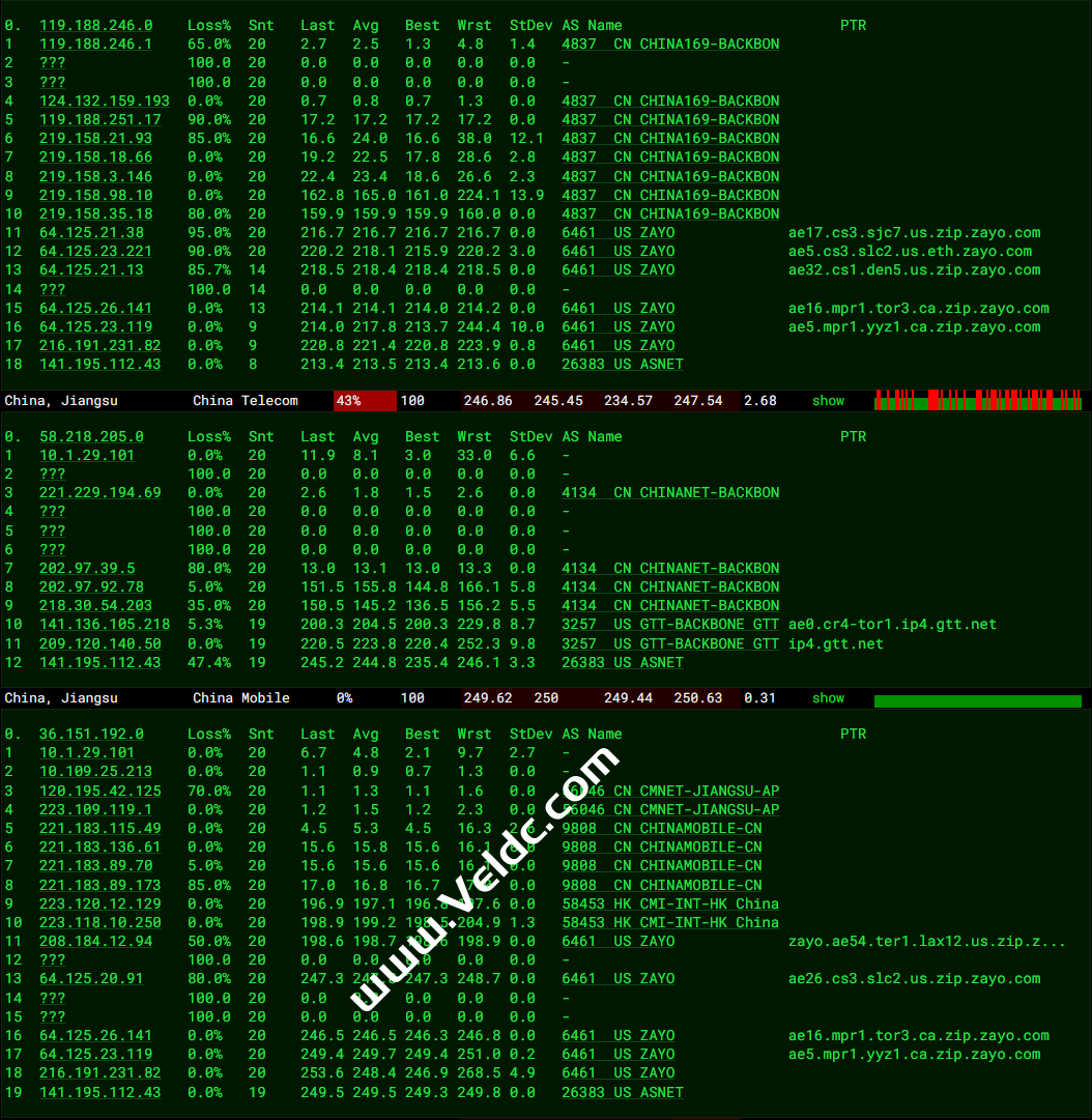 6 218.30.54.162 AS4134 [CHINANET-US] 美国 弗吉尼亚州 阿什本 Zayo-CT-PoP www.chinatelecom.com.cn 电信