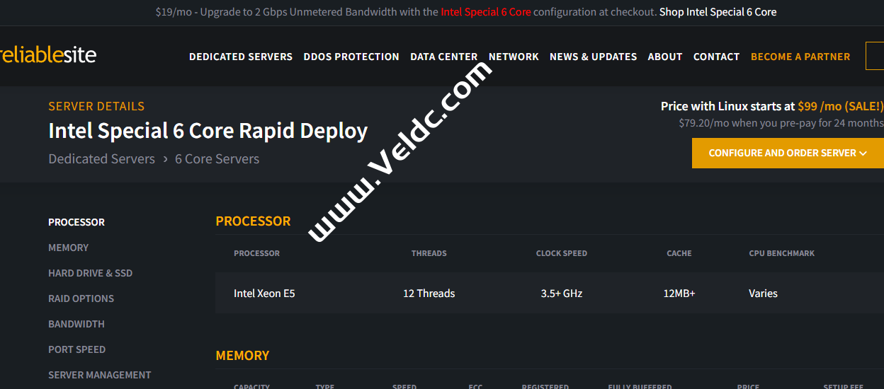 ReliableSite近日发布了一款英特尔特惠 6 核服务器促销,机房位于美国纽约,配置为Intel Xeon E5,256 GB内存,4 x 2TB SSD 存储,默认为1Gbps不限流量,月付99美元,但是可以特惠加19美元升级至2Gbps不限流量,仍然提供免费20Gbps DDoS防护,升级后月付仅需118美元,性价比还不错,近期有需要美国服务器、大带宽不限流量服务器的同学可以关注一下,商家支持Paypal等付款方式。