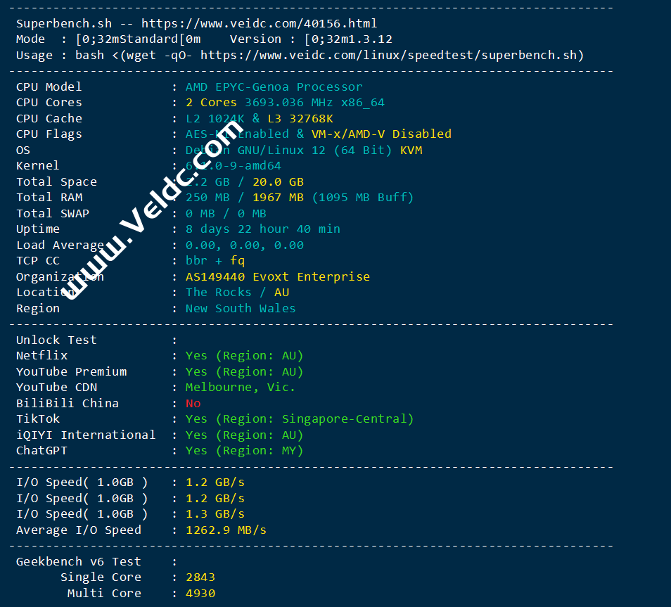 - Evoxt:澳大利亚VPS测评,1Gbps大带宽/支持解锁ChatGPT/TikTok等流媒体应用,月付$2.99起
