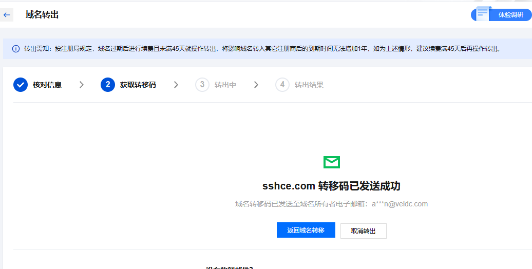 选择单个域名或多个域名转移,将要转移的域名和转移码填写好