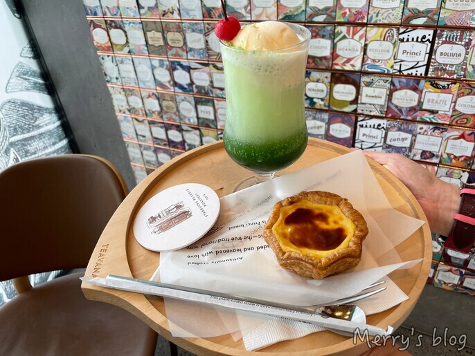 私は2階でクリームソーダ抹茶とエッグタルトを注文しました。