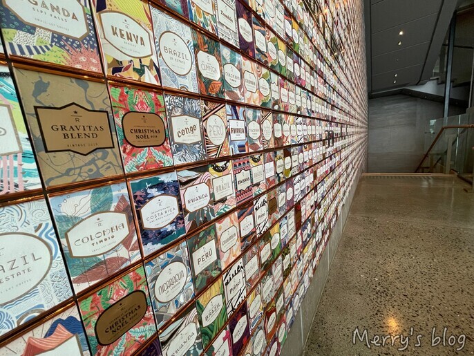3階に上がると壁にはスターバックス リザーブのコーヒーカード5,000枚が飾ってありました。